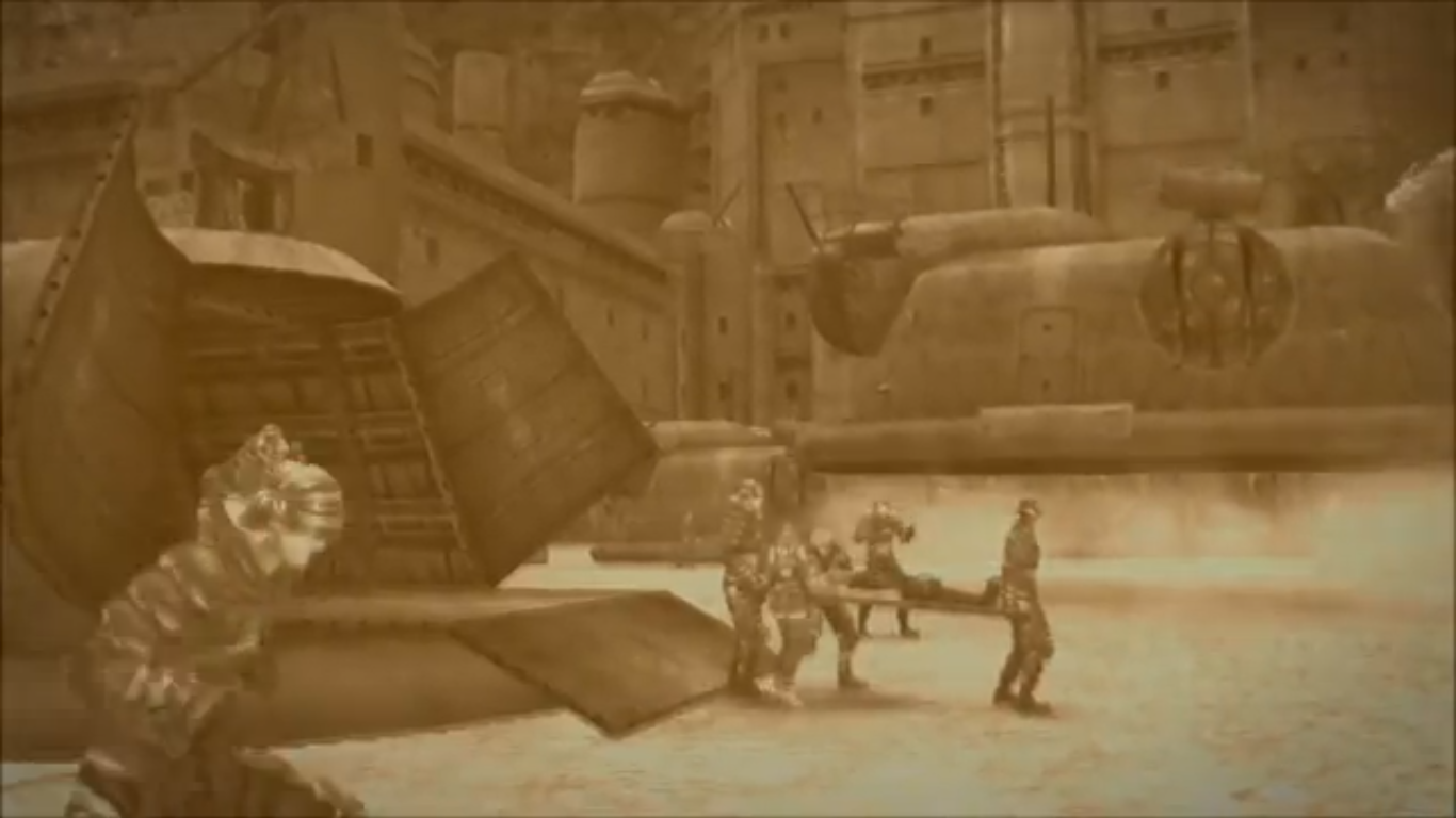 “Dunban! Dunban!” Shulk and Fiora were hunched over his battered body, lying on a stretcher carried by two soldiers.