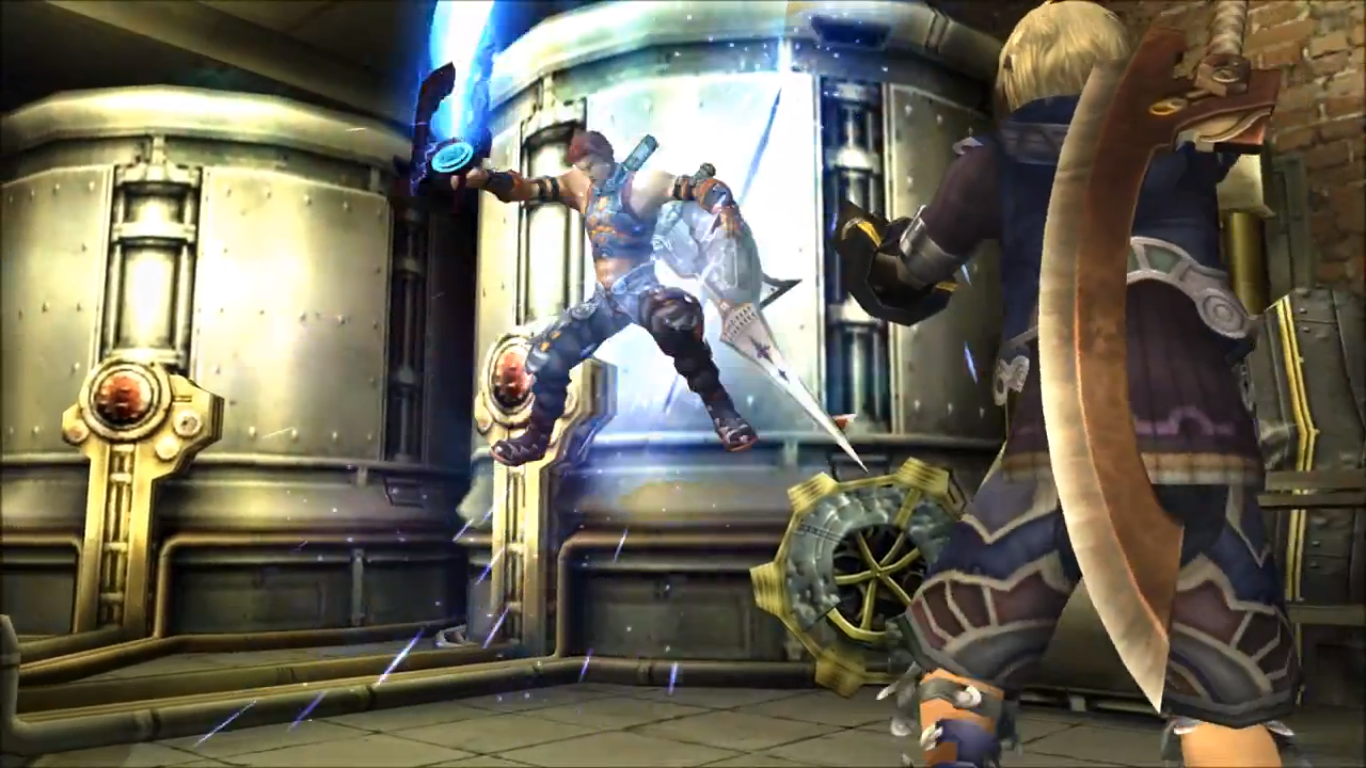 Fiora and Shulk cried out as the Monado activated in Reyn’s hands. He staggered towards one of the gas tanks and sliced it cleanly open, twirling around the room. He then made a clean cut in Shulk’s other gas tank, before slamming into it on his back. The Monado waved through the air, forcing Reyn towards the corner where Fiora was standing.