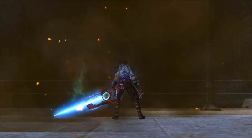 A smile crept up Shulk’s and Reyn’s faces as the smoke cleared. Dunban was clutching a bright red sword in his left hand while his right arm hung limply by his side. Blue electricity licked his entire body and the sword itself as he straightened up and surveyed the area.