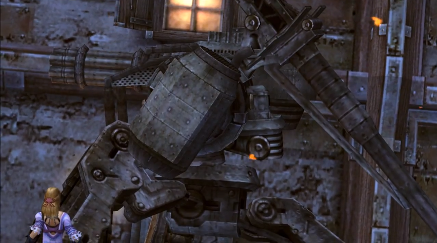 Reyn turned just in time to block the machine’s claws with his shield, and was now grappling with the creature as it tried to crush him. Shulk ran up to it and began to attack it, his sword bouncing uselessly off its side.