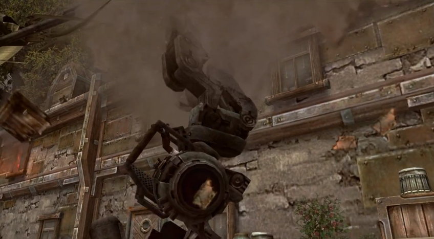 The Monado flashed, and Shulk once again found himself watching everything without colour. He saw the mobile artillery’s guns blasted off by an ether bullet; then it slammed into the side of a house and fell to the ground. The faced Mechon had drawn its claws back, and then it sank them deep into the cockpit.