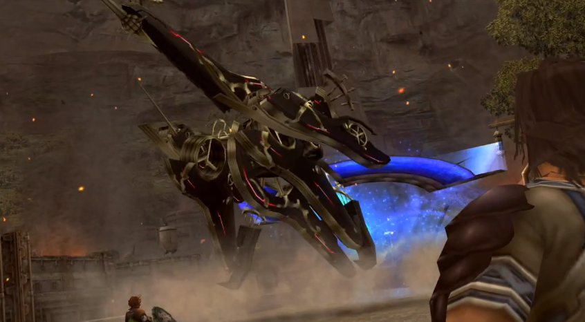 The Mechon turned to Shulk, and then paused. Its eyes started flashing, and it looked up at the sky. It gave Dunban a wistful glance before changing to its flying form and taking to the air.