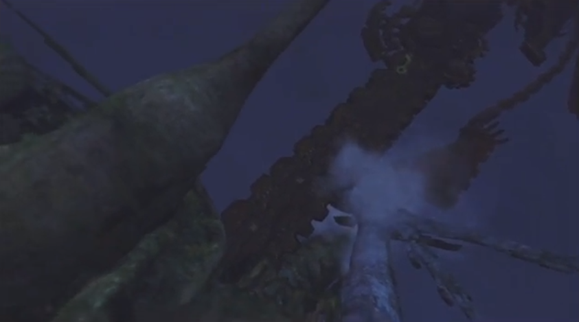 Shulk waded through the shallow pool that lay between him and the vine-covered pillar of stone. A shiver ran through him as he walked through a ball of blue light that softly jumped out of the pool in front of him; the ball soaked through his jacket and slowly fell back into the water. He reached the edge of the pond and then almost stumbled into another one; he glanced up and weaved his way between many, smaller pools of water to reach the pillar and scale its vines.