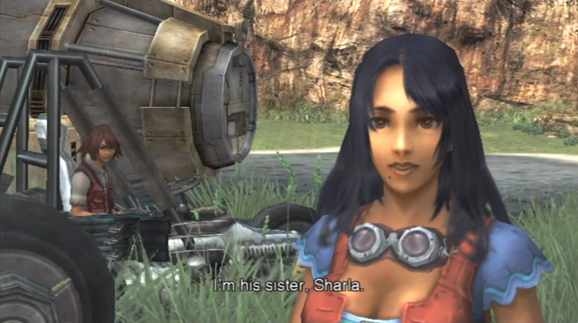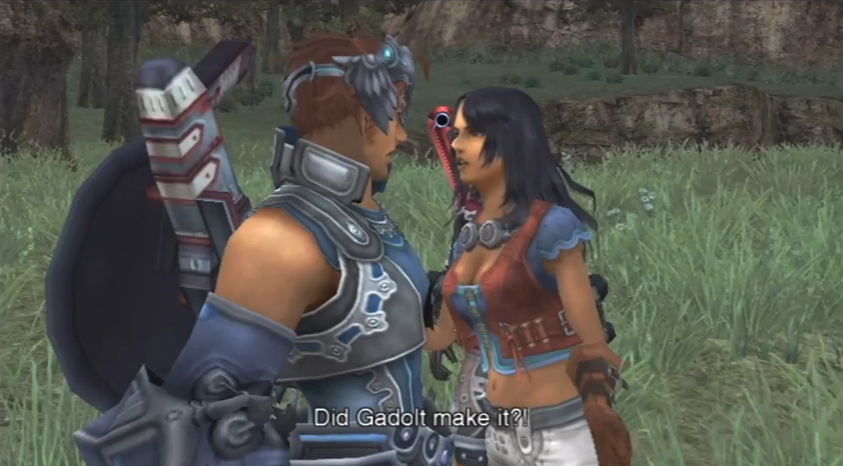Sharla smiled softly and bent down to touch her forehead to Juju’s. Then she stood and turned her brown eyes to Shulk and Reyn. “That gear. You must be survivors from the Defence Force!” She ran over to Reyn, looking desperate. “Is Colony 6 OK? Did Gadolt make it?!”