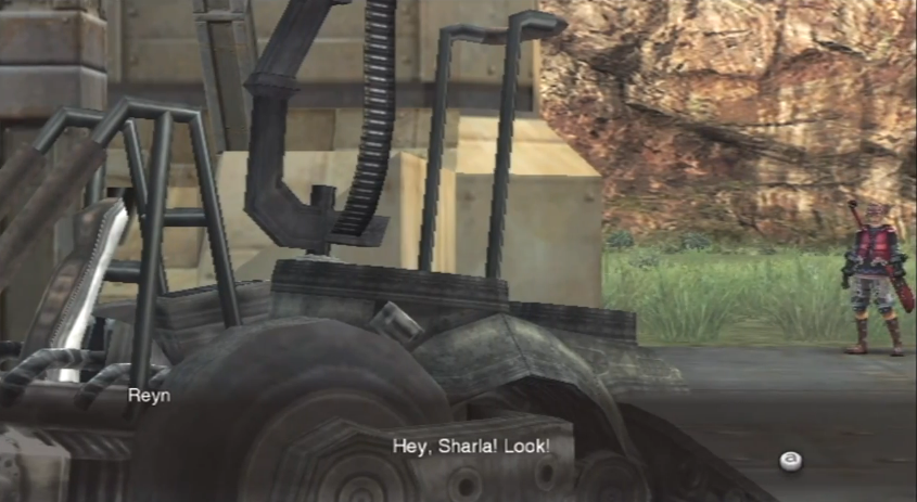 Reyn joined Shulk and Sharla. “That’s right. And the light swirling around us… That’s the Monado ‘n’ all.” Reyn glanced back. “Sharla! Let’s move!” He looked up at the giant Mechon before him. “Now, let’s do this!”