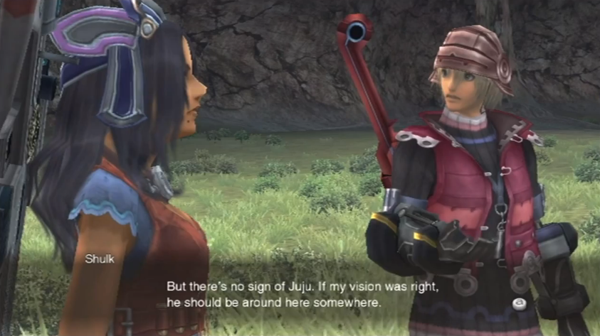 “There’s a Mechon…” Shulk began. “It’s taken Juju!” Sharla whimpered.