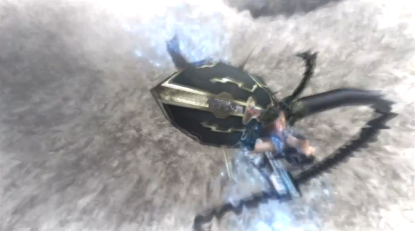Shulk dashed over to the other two tentacles and sliced one through. The other continued on its path and rose; Shulk yelled as he rolled to get away from the fireballs it launched at him. He regained his footing just as it came flying towards him; he leaned back to avoid the propellers and then cut them off with the Monado.