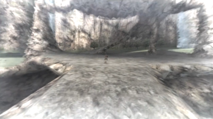 He saw a huge stone spire rising from a chasm in the ground; around the spire twisted what looked like a rocky walkway that one could almost use to trek from top to bottom. The vision changed, and Shulk saw a rocky bridge connecting the spire to the land around it. At the end of it stood a humanoid figure.