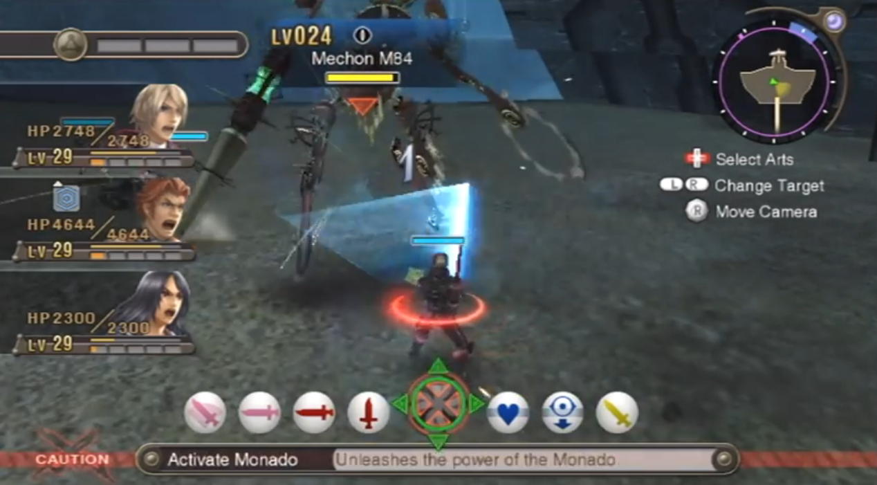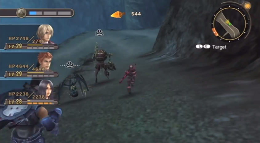 They had no time to think, as the two Mechon spotted the party and quickly made their way towards them. Otharon and Sharla jumped back, firing at one of the machines. It made its way towards them; Shulk ran in and sliced off part of its leg, so it collapsed to the ground. This works almost too well.
