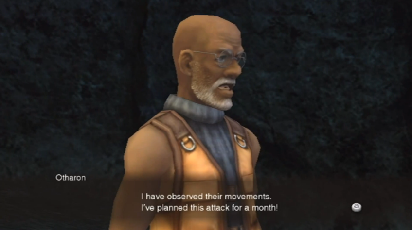 How dare he… Otharon snapped. “You insolent… We don’t have that kind of time! You don’t know a damn thing about these machines.” He turned away from Shulk. “I have observed their movements. I’ve planned this attack for a month! I know full well what’s going to happen to my brothers and sisters!”
