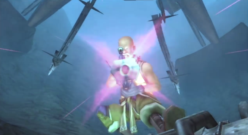 Shulk’s thoughts flicked back to his vision. “Otharon, don’t do it!” Sharla fired a few shots at the prism trapping Juju, freeing him.