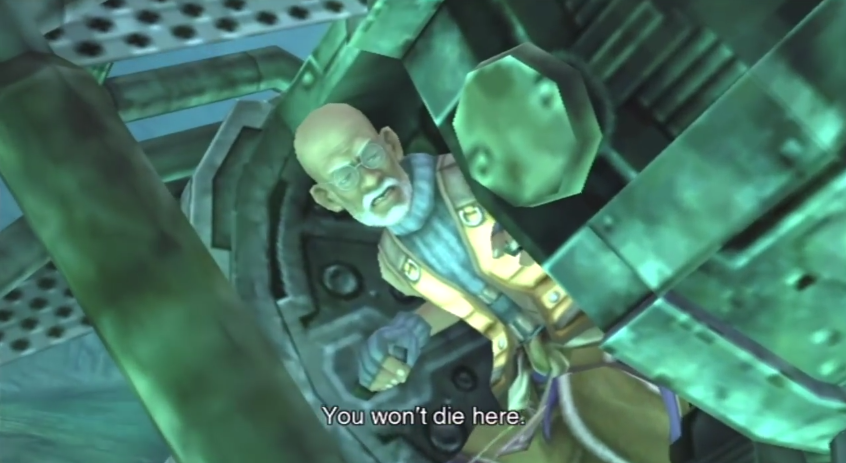 Shulk watched in horror as Otharon and his machine started to fall into the ether river. “But I… This isn’t supposed to happen.” Shulk stood up in his seat. “Otharon!”