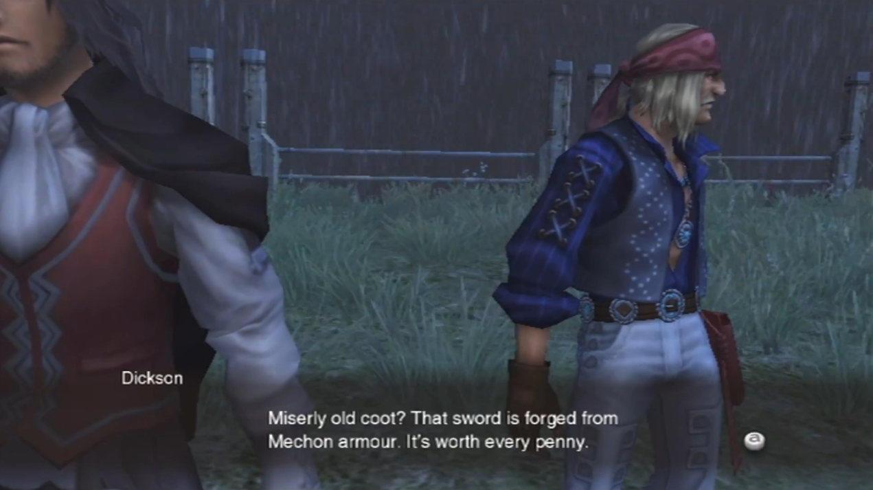 Dickson scowled. “Miserly old coot? That sword is forged from Mechon armour. It’s worth every penny.”