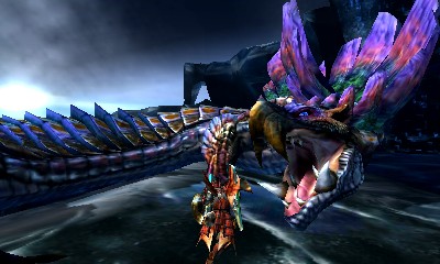 The Tidal Najarala is one of the new subspecies in Monster Hunter 4 Ultimate. It’s found in the tundra that is the Frozen Seaway, and is weak to fire and lightning. It’s mostly blue in colour, but also has greens, yellows and purples all along its body, making it one of the more colourful monsters.